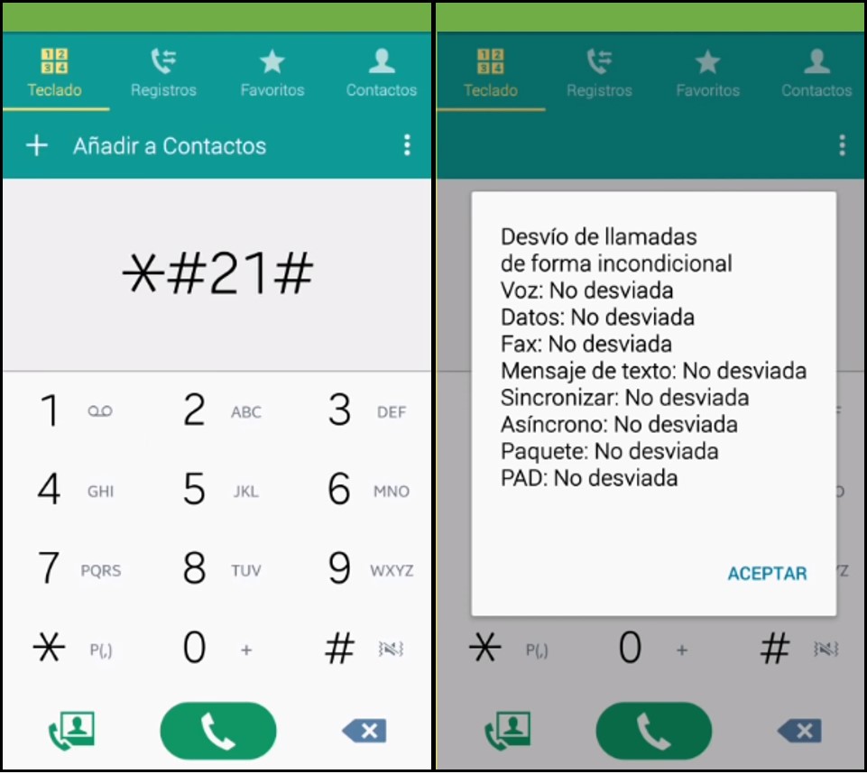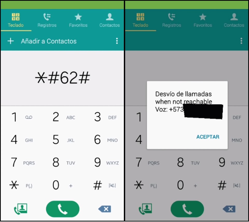 *#62#: Al marcarlo, indicará hacia dónde se están redirigiendo las llamadas, mensajes y datos. Comprueba que el número que figura sea de la propia compañía, de no ser así, lo recomendable es actuar inmediatamente, recurriendo a la compañía telefónica.