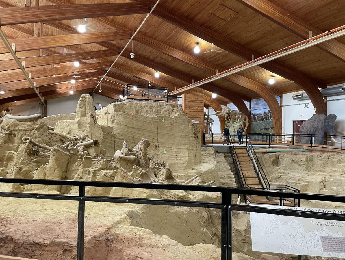 Para aprovechar este increíble yacimiento de fósiles de mamuts machos del Pleistoceno, en Dakota del Sur, en 1974 comenzó la construcción de un museo rodeando esa cama de huesos, para que estuviera abierta al turismo todo el tiempo.