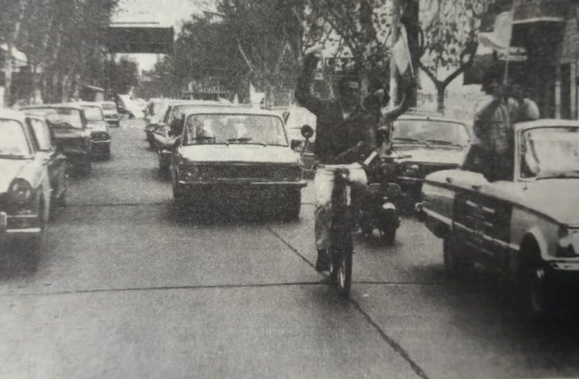 Pocas cosas más típicas del pueblo sanjuanino que celebrar los triunfos futboleros en Plaza 25 de Mayo. Y el 22 de junio de 1986 no fue la excepción. En una tarde fría y nublada, la multitud exultante se acercó con banderas y camisetas a festejar la espectacular victoria de la Selección Argentina ante Inglaterra, con dos goles épicos de Diego Armando Maradona. Caminando o en autos, recorriendo las calles aledañas a puro bocinazo.
