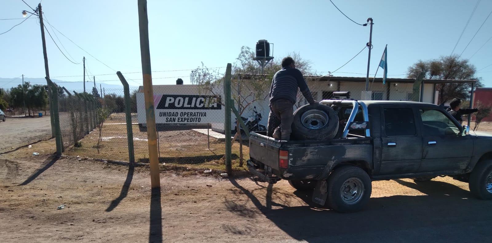 Luego de trasldarlos hasta la unidad policial, comenzaron el traslado hasta la otra camioneta, que tenía las cubiertas rotas, donde viajaban las dos mujeres y el niño.