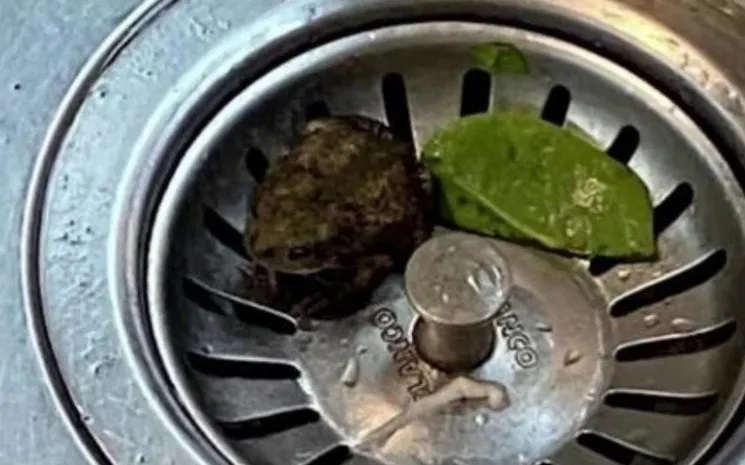 Estas imágenes fueron tomadas a fines de junio, pero se viralizaron en las últimas horas a través de las redes sociales y en la mismas se puede ver al anfibio de color verde oscuro sentado cómodamente.