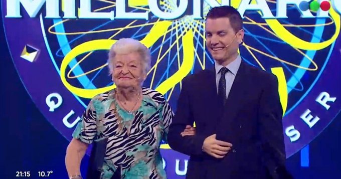 Elba Caracino estuvo sentada en "Quién quiere ser millonario" y se llevó $300.000. La mujer tiene 100 años "y tres meses", como aclaró, y sueña con conocer San Juan.
