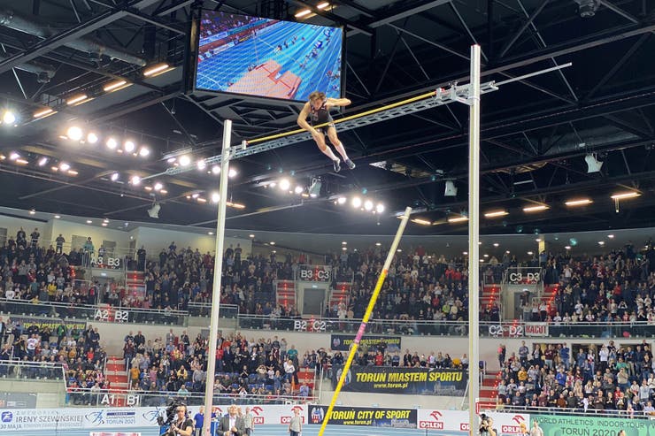 Este sábado, la cita fue en Torun, Polonia, por el circuito mundial indoor, y el dueño de la hazaña fue el sueco oriundo de Estados Unidos Armand Duplantis, que señaló un registro de 6,17m. ¡Impresionante! El atleta, de 20 años y dos meses, pasó el listón con una enorme plasticidad. Y celebró alocadamente con su madre, Helena. Ya estaba dentro de la historia del deporte mundial con un salto épico. Imagínese pasar la línea de un 3er piso de un departamento, aproximadamente.