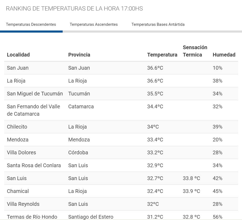 A las 17, la temperatura se encontraba cercana a los 37 grados con una imperceptible brisa del sector Sur y 10 por ciento de humedad.