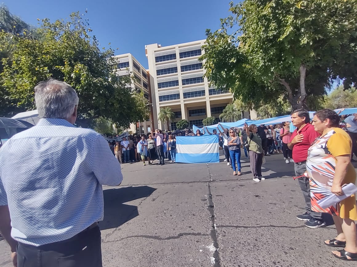 En simultáneo, dentro del edificio algunos empleados también realizaron una ruidosa manifestación en reclamo del aumento otorgado en la última paritaria.