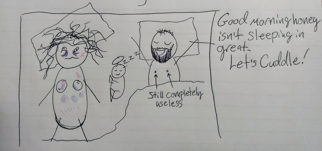 Una mujer no encontraba las palabras para explicarle a su marido por qué estaba tan cansada a la mañana y decidió hacerle un dibujo. "Me costaba cómo decirle por lo que había pasado esa noche mientra él dormía", afirmó la joven en las redes sociales.