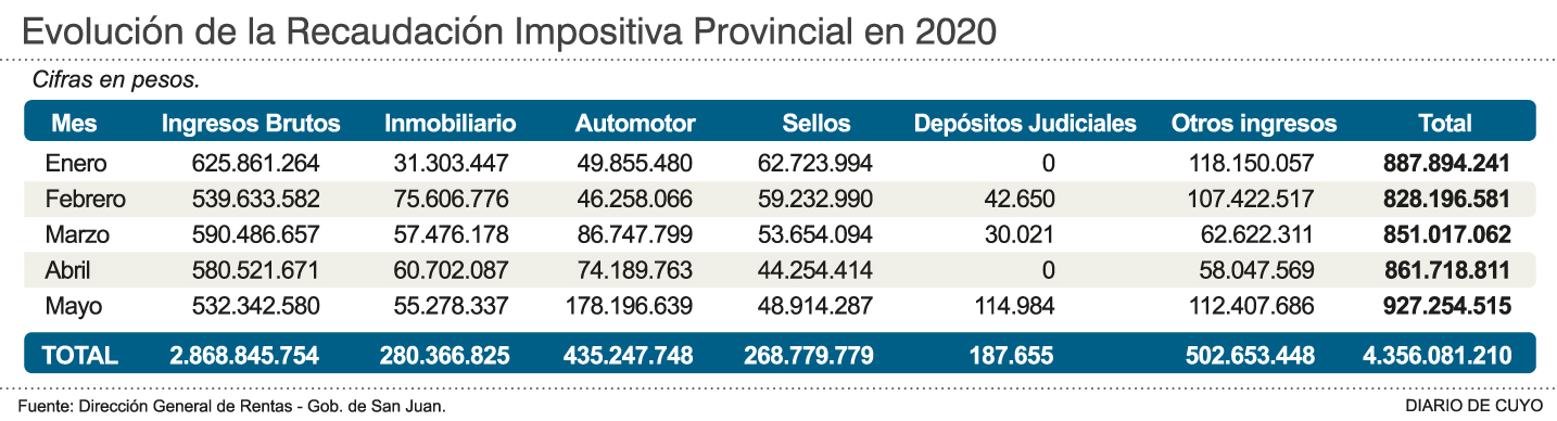 El titular de la Dirección General de Rentas, Ernesto Gil, informó que en mayo ingresaron $532.342.580 en concepto de Ingresos Brutos, es decir, 48.179.090 pesos menos que en el mes anterior (ver infografía).