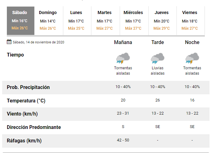 En cuanto a mañana domingo, se anuncia una temperatura máxima similar y se mantiene la probabilidad de tormentas y lluvias. Situación que permanecerá vigente durante los primeros días de la semana que viene.