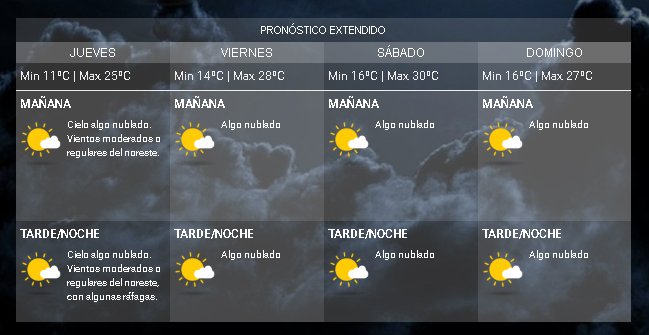 La jornada se presentará con cielo algo nublado y vientos moderados o regulares del noreste, con algunas ráfagas.