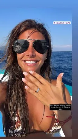 El momento fue muy jugado, ya que Mazzoni decidió proponerse arriba de un barco en Italia. La pareja posó para una supuesta foto mientras navegaban por Faraglioni, en la Isla de Capri, cuando el empresario se arrodilló y sacó un anillo para pedirle casamiento.