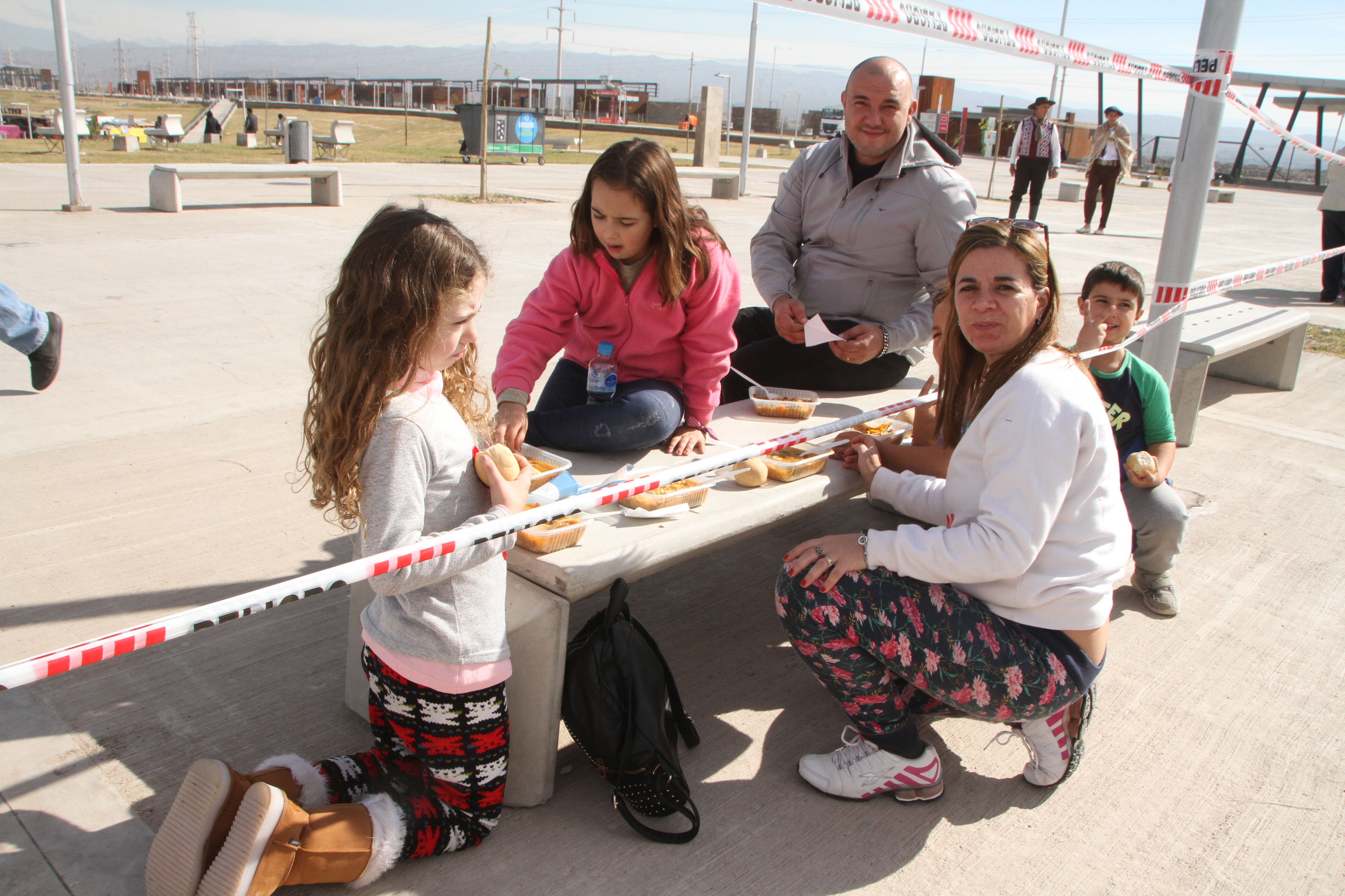 La gente llegó a usar los bancos del predio como mesas improvisadas para disfrutar las porciones preparadas en enormes sartenes en el lugar.