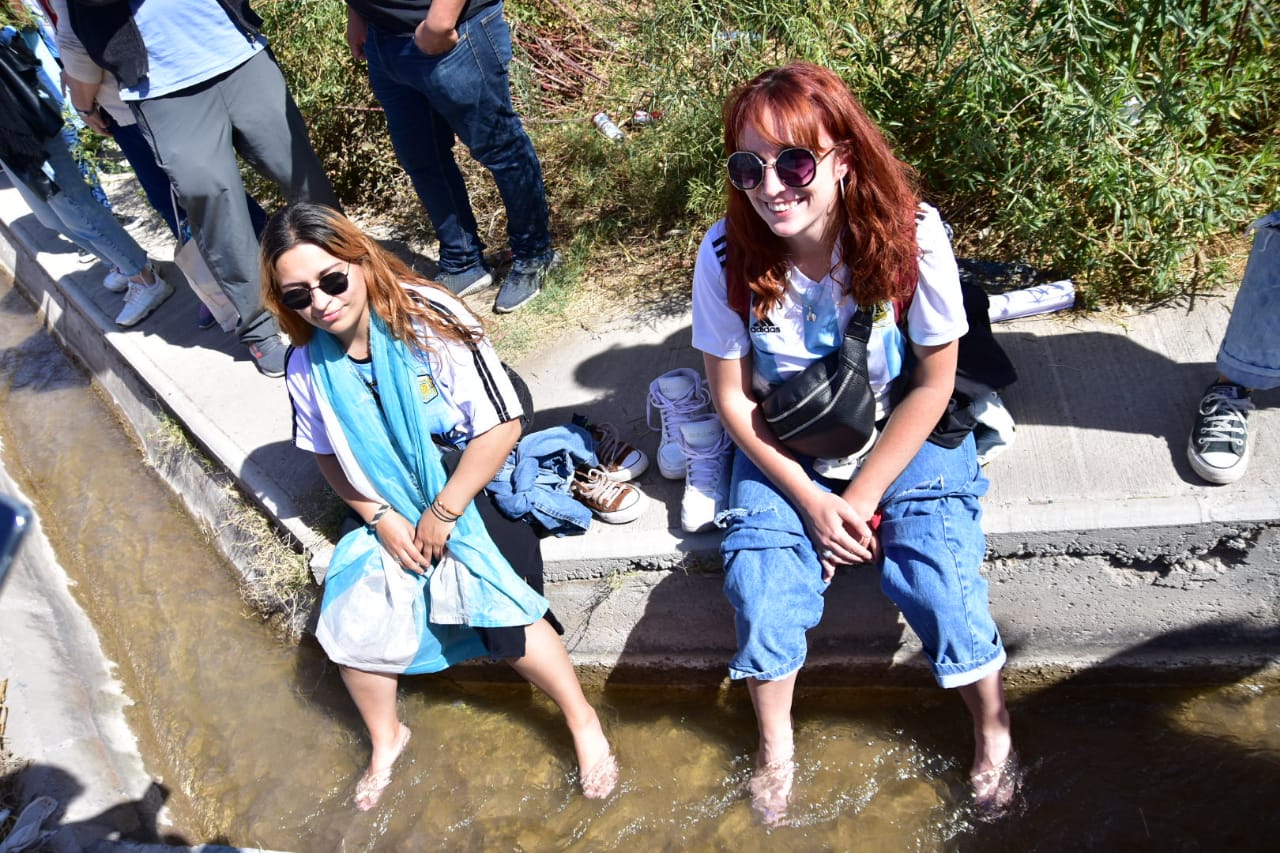 Vienen mal dormidas, cansadas pero con la alegría propia de quien tiene por delante un partido de esta magnitud. Eso sí, tan acaloradas que decidieron sacarse el calzado y, como buenas sanjuaninas, poner los pies en remojo en un canal lindero al estadio: "Está fresquita", espetó una de las damas.