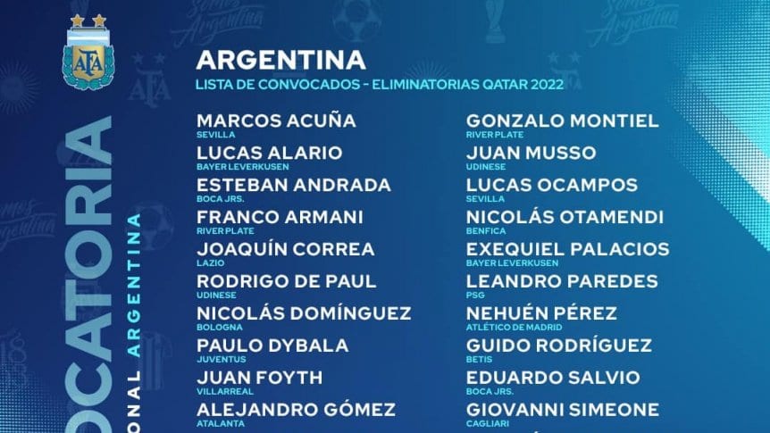 Lionel Scaloni dio la lista definitiva para los encuentros que la Selección Argentina jugará el 8 y 13 de octubre frente a Ecuador y Bolivia, respectivamente, en el que será el arranque de las Eliminatorias Sudamericanas para el Mundial de Qatar 2022.