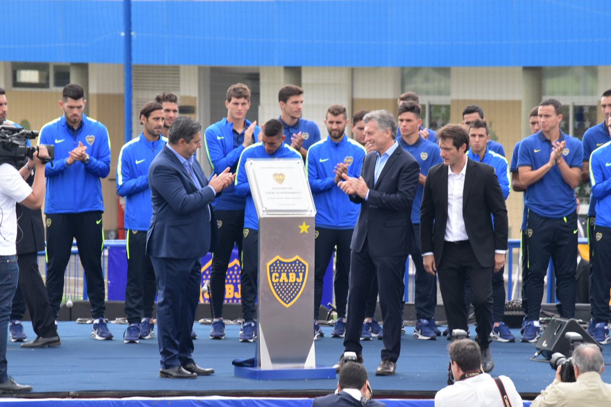 Además de dirigentes, cuerpo técnico y jugadores de la Primera, Reserva, juveniles e infantiles, participaron del acto de inauguración el nuevo presidente de la AFA, Claudio Tapia, y el presidente de la Nación, Mauricio Macri, ex mandamás de la institución, a quien le ofrecieron que el predio lleve su nombre pero no aceptó, “para evitar personalismos y liderazgos mesiánicos en el país”.
