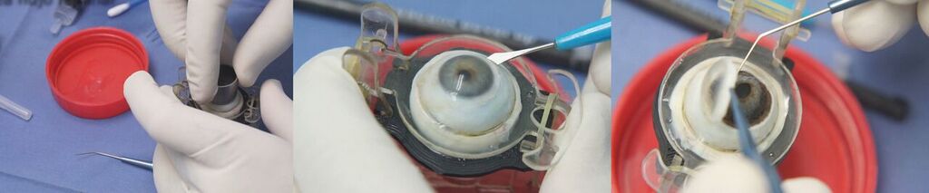 Con el nuevo transportador se sostiene el ojo y se transporta sin que se dañe la córnea y se puede procesar la misma en forma más segura.