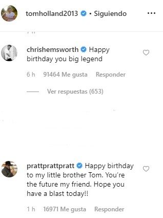 Entre ellos, se encontraron Chris Hemsworth, quien escribió "Feliz cumpleaños gran leyenda" y Chris Pratt, quien afirmó: "Feliz cumpleaños a mi hermanito Tom. Tu eres el futuro mi amigo Espero que tengas una explosión hoy!".
