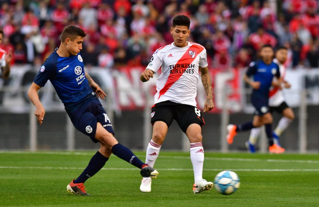 En un primer tiempo chato, fue Talleres el que generó las mejores ocasiones. Ninguno de los dos equipos logró establecer un dominio, pero lo que más sorprendió el bajo nivel de efectividad en los pases que tuvo el elenco dirigido por Marcelo Gallardo. Debido a la cercanía de la revancha de los cuartos de final de la Copa Libertadores ante Cerro Porteño, el DT del "Millonario" apostó a una formación alternativa que incluyó el debut del chileno Paulo Díaz en la zaga central.