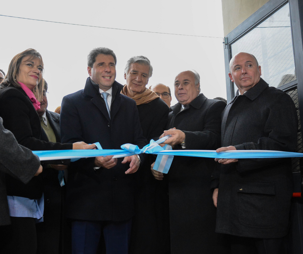 Esta mañana, el gobernador Sergio Uñac, el ministro de Educación Felipe de los Ríos y el intendente de Rawson Juan Carlos Gioja dejaron inaugurada la ENI N° 39 Hebe San Martín de Duprat, ubicada en el interior del Barrio La Estación.