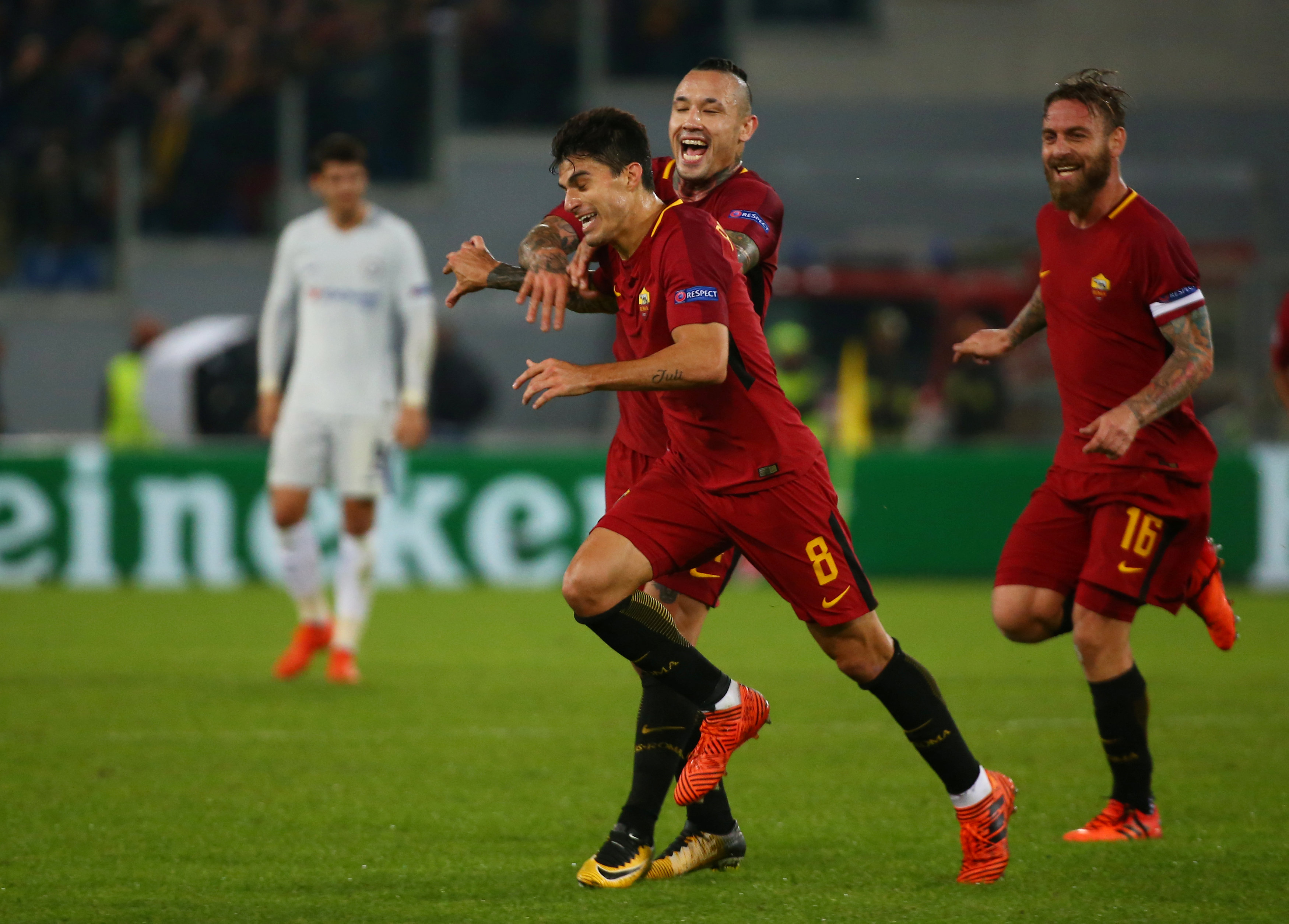 Roma, con un gol del argentino Diego Perotti y con la presencia de Federico Fazio, derrotó hoy a Chelsea 3 a 0, por la cuarta fecha de la Champions League, y quedó como líder del Grupo C. Perotti redondeó la goleada en el Olímpico de Roma con el tercer tanto (18m.ST) tras los dos primeras conquistas de Stephan El Shaarawy (1m. y 36m.PT).