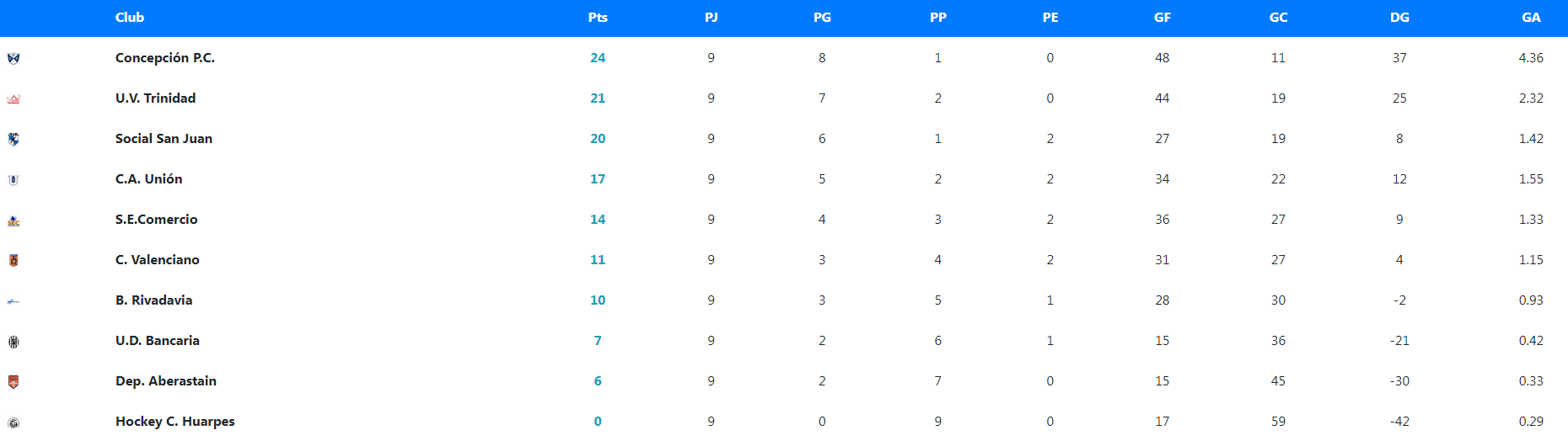 El tercero de la tabla también sumó de a tres. Social San Juan, de muy buen presente, derrotó sin problemas por 6-0 a Aberastain, se ubicó a un punto del Comunitario y a cuatro del Azul.