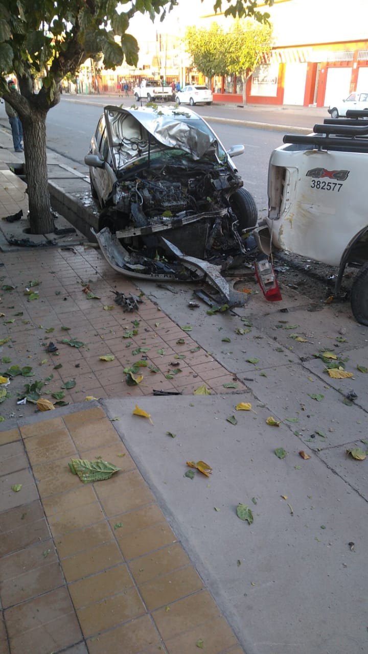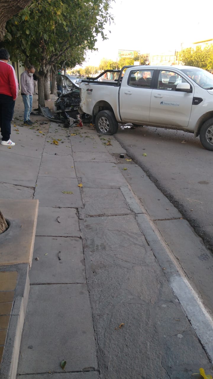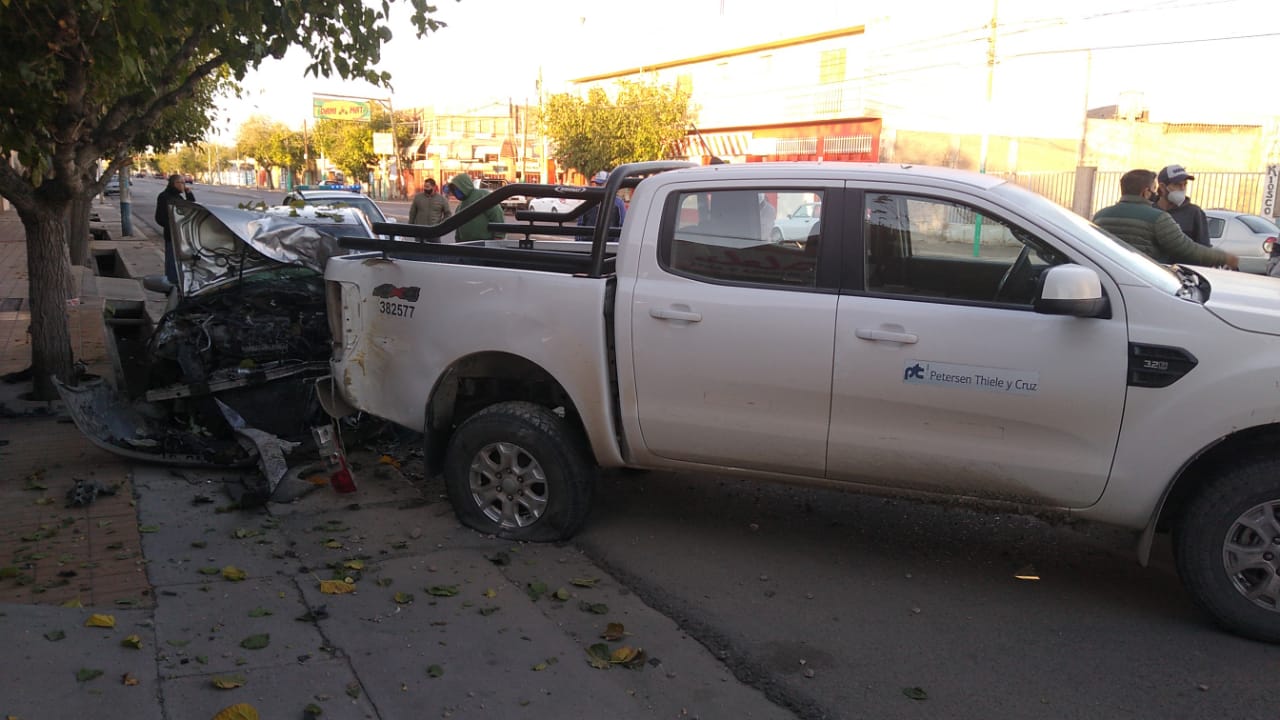 Un espectacular accidente ocurrió en la mañana de este sábado en inmediaciones de Avenida España y Comandante Cabot, en Rawson. Uno de los vehículo terminó con el frente totalmente destruido.