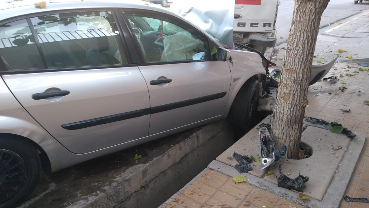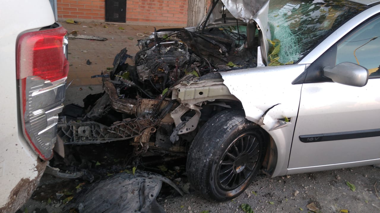 Por la fuerza del impacto, el vehículo rozó también un árbol y terminó con una de sus ruedas en la cuneta.