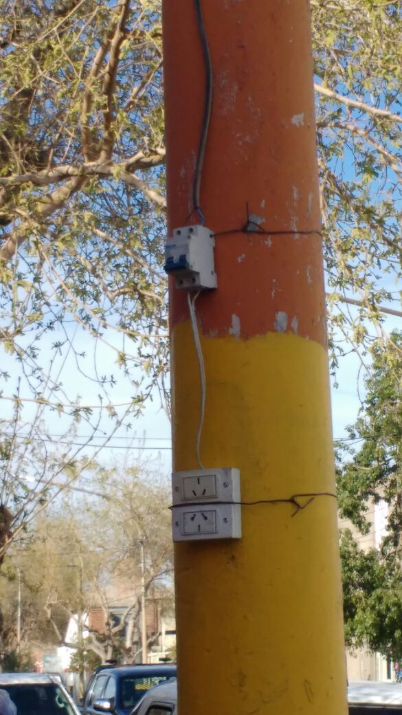 Un lector envió una imagen y el siguiente comentario: "Esta conexión ilegal está en la esquina de calle Pueyrredón y 25 de Mayo, en Capital. Es un peligro y es ilegal, que alguien haga algo".
