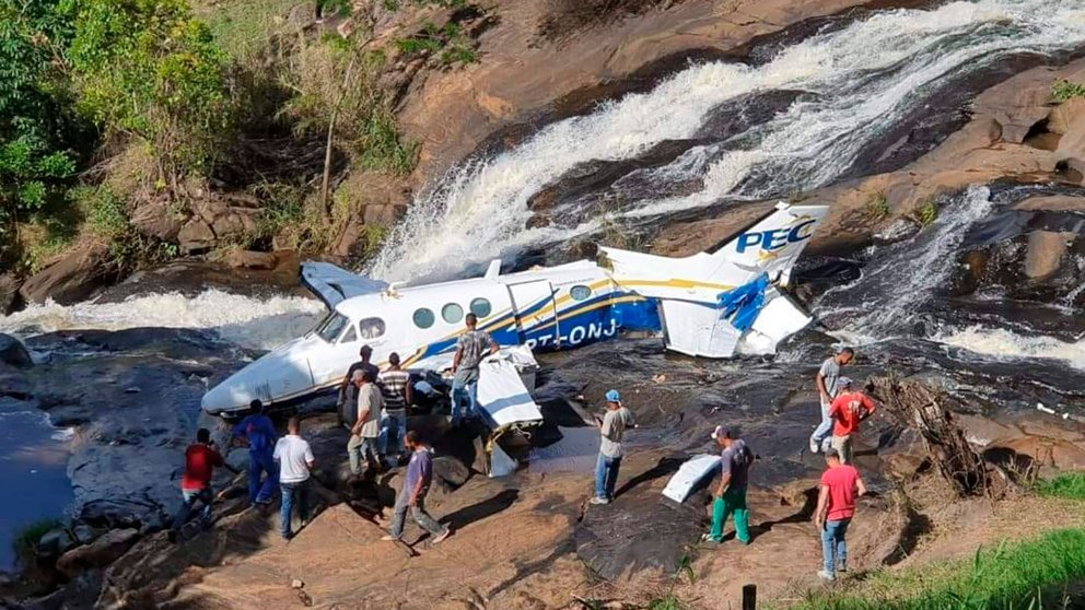 Según imágenes divulgadas en redes sociales, la avioneta, que tenía los papeles para volar al día -de acuerdo con las autoridades brasileñas- se estrelló cerca de una cascada de agua, en una zona de difícil acceso para los equipos de rescate. Las TV locales mostraron a bomberos trabajando para retirar los cuerpos del avión, que quedó encallado en un área rocosa junto a la cascada.