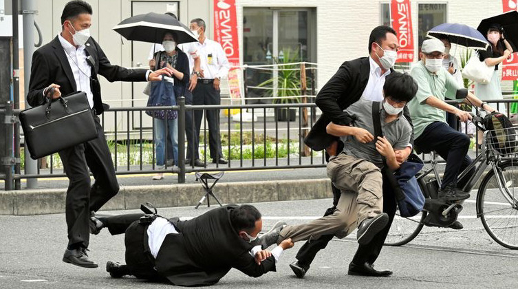 Un hombre de 41 años abrió fuego con un arma casera contra el político por la espalda mientras pronunciaba al mediodía un discurso en la vereda, a la entrada de una estación de tren, un ataque que sorprendió a la nación donde el control de armas se encuentra entre los más estrictos del mundo y los niveles de violencia entre los más bajos.