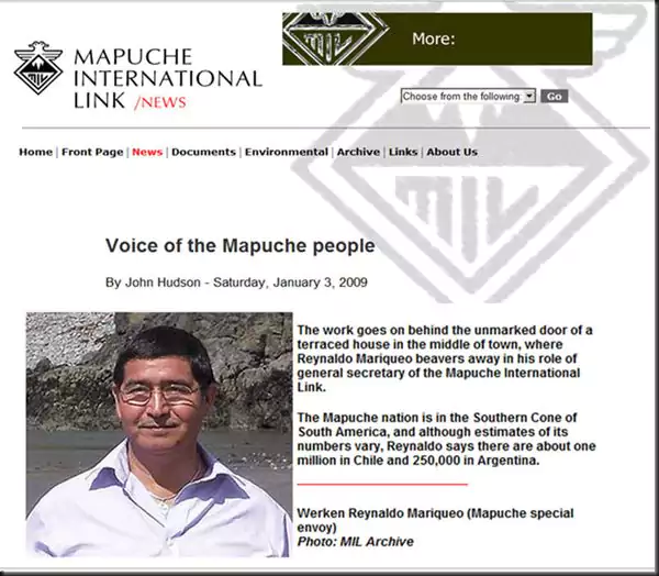 Mientras en el sur de nuestro continente, grupos mapuches, como la agrupación Resistencia Ancestral Mapuche (RAM) o la Coordinadora Arauco Malleco (CAM), le declaran la "guerra a Argentina y Chile", y protagonizan actos de sabotaje, incendios y amenazas, la MIL explica –en inglés– que "the Mapuche Nation está situada en lo que se conoce como el Cono Sur de Sudamérica, en el área actualmente ocupada (sic) por los Estados argentino y chileno".