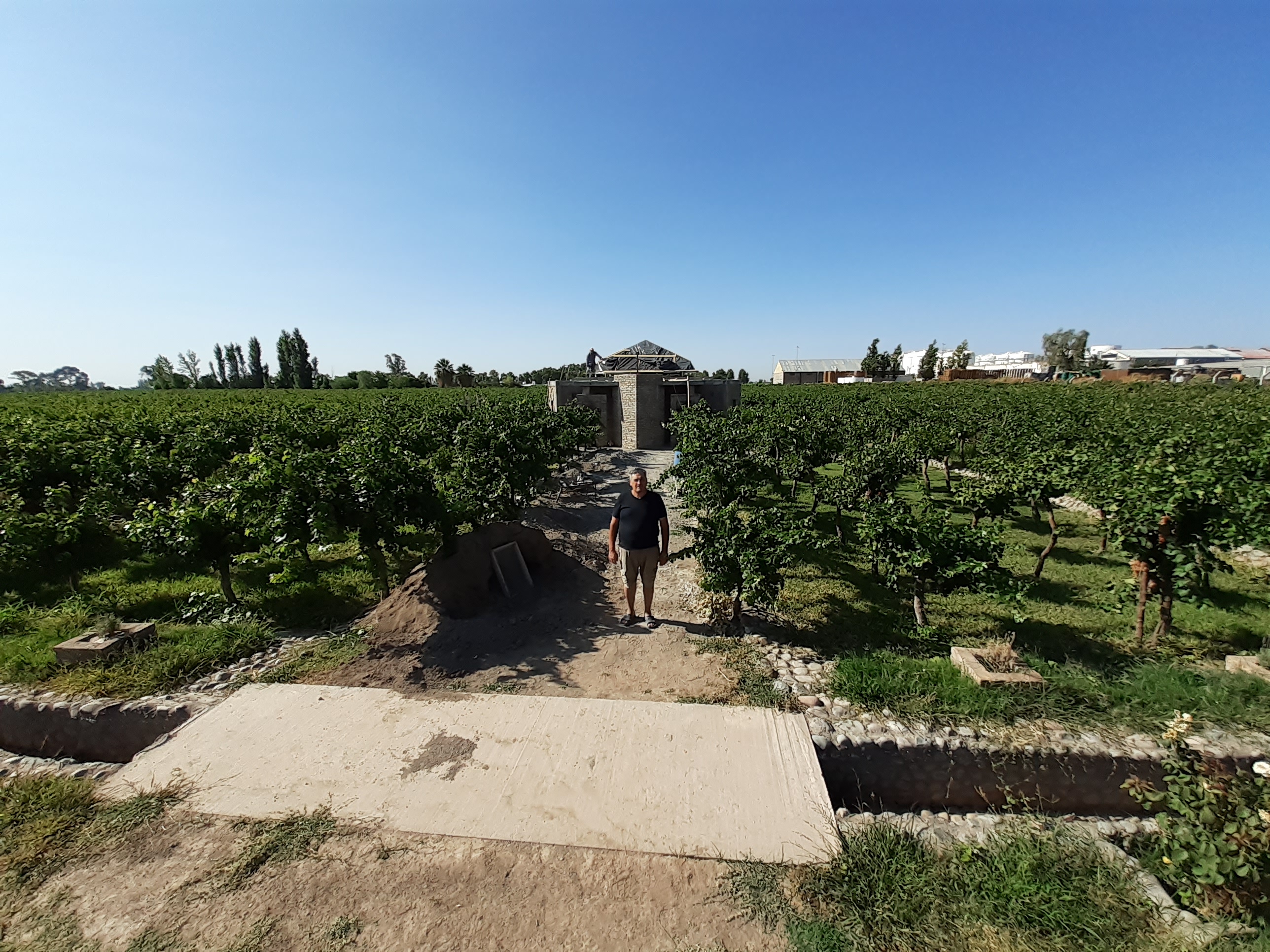 Juan Diápolo, de la Bodega El Milagro en Albardón, avanza ahora en la construcción de un templo ecuménico para el turismo enológico en su pequeña bodega artesanal de Albardón.