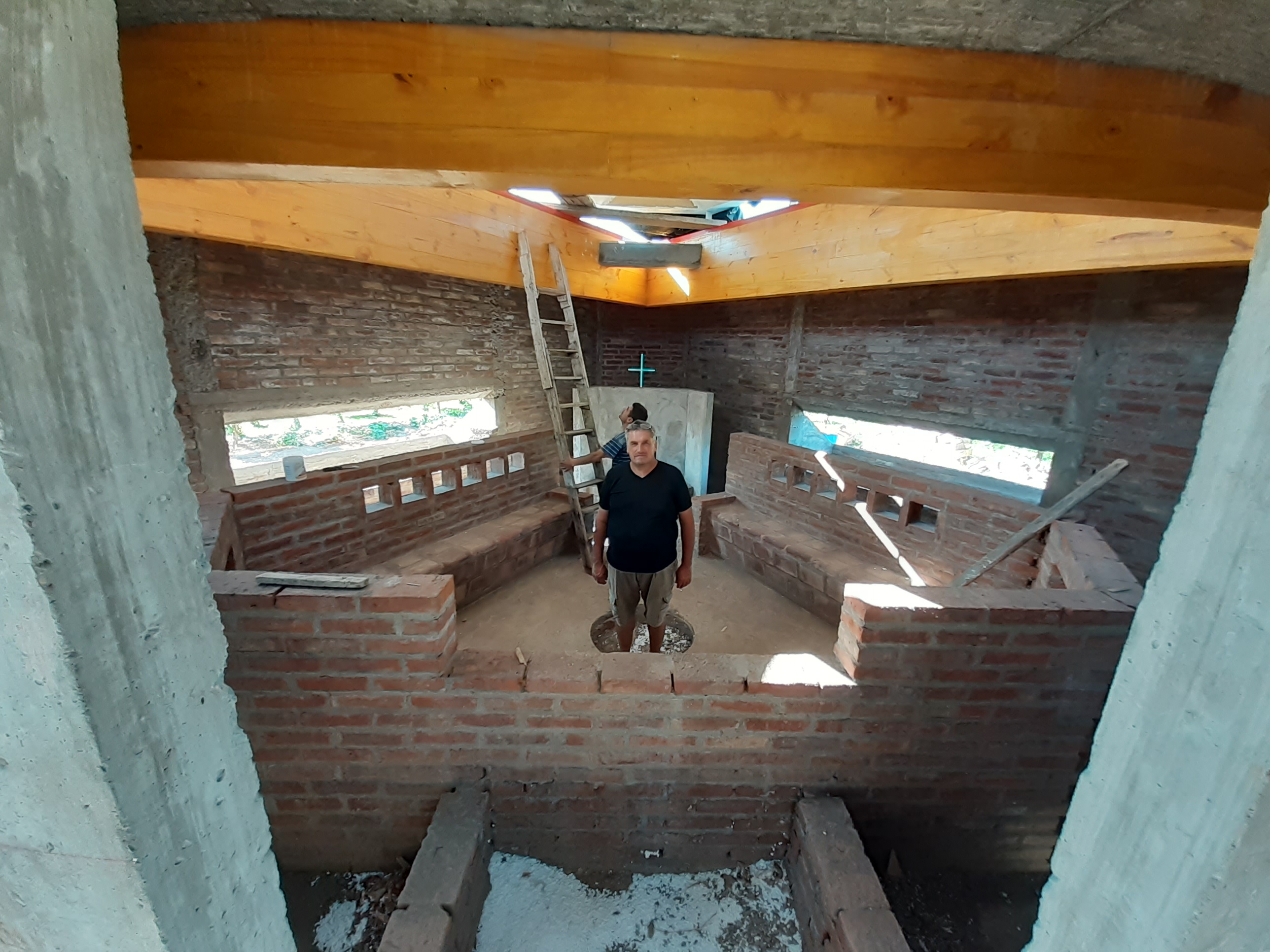 La pequeña iglesia en construcción en su viña hoy tiene forma piramidal y la cúpula es piramidal. Está pensada para integrar además el entorno vitícola, haciendo de la naturaleza parte del templo, es decir, amigable con la Casa Común como le llama el papa Francisco al planeta, en su primer encíclica.