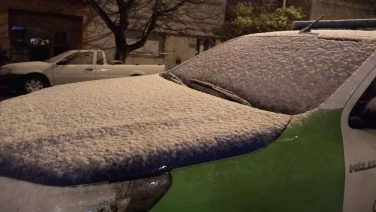 Una copiosa nevada sorprendió a los habitantes de la localidad bonaerense de Tres Arroyos.