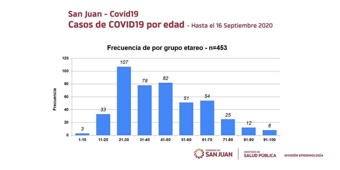 Este jueves, el Ministerio de Salud Pública de la provincia entregó datos sobre la franja etaria de los contagiados, que en total son a la fecha 453. Si bien la mayoría está entre los 21 y 30 años, llama la atención el número de casos en menores de 20 (36 casos) y mayores de 81 (20). Dos extremos de cómo impacta la enfermedad.