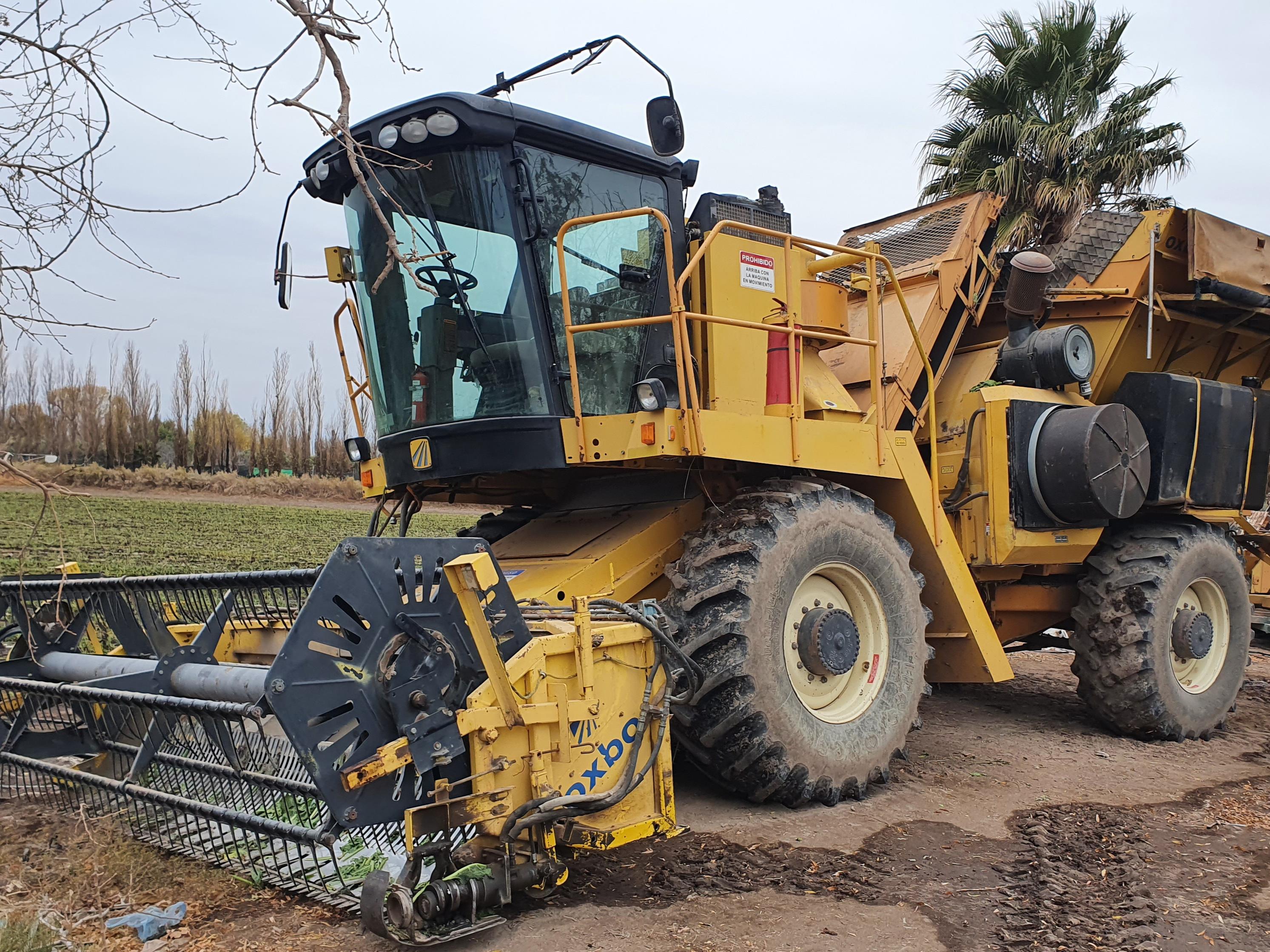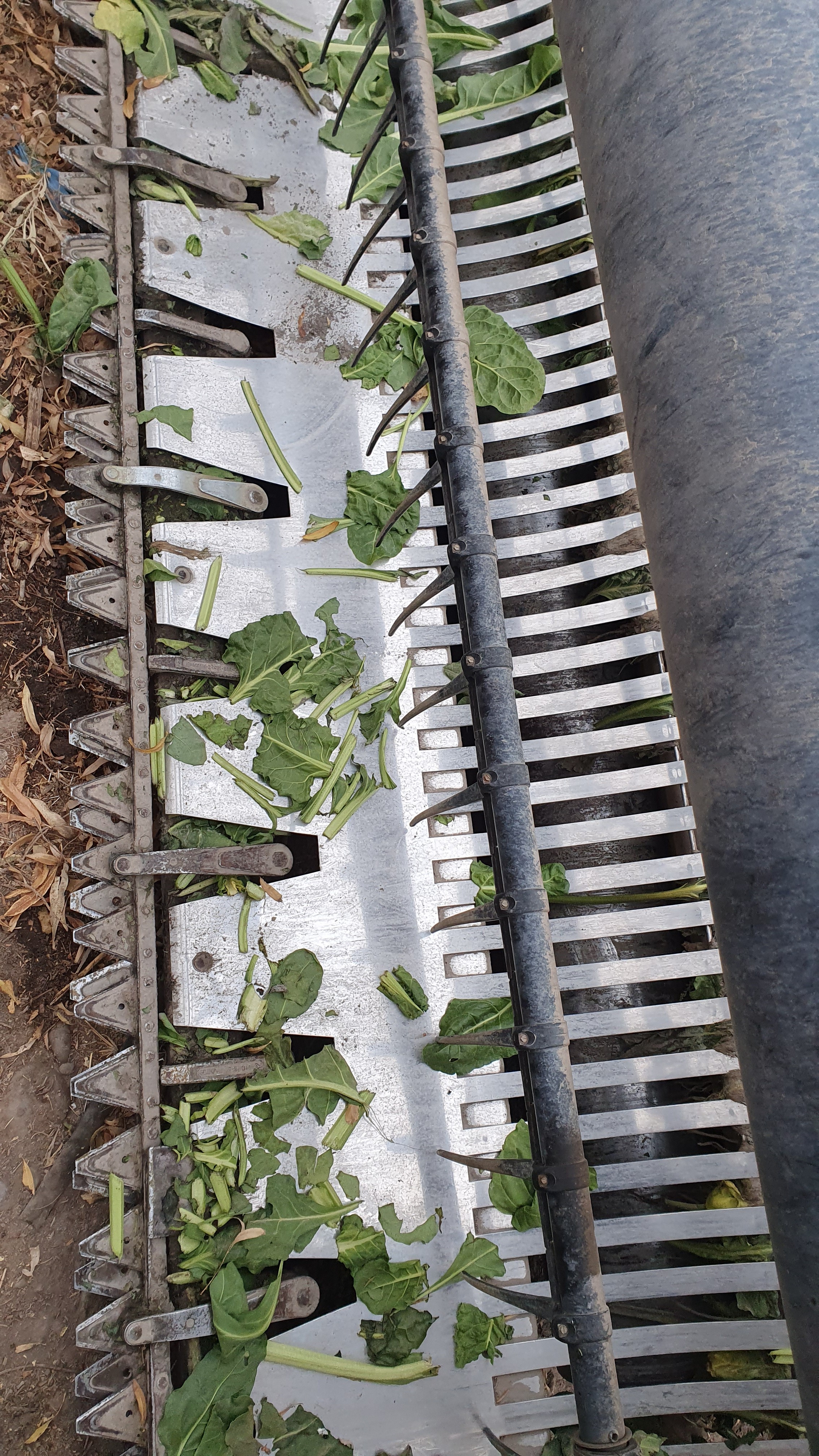 En el predio, estaba la cosechadora de Los Robles, Molinos del Río de la Plata, que pronto empezará a recolectar todas las hojas verdes grandes que tienen esas espinacas (ver fotos). Se trata de una máquina estadounidense Oxbo, que cosecha unas 2 toneladas en 30 minutos, y no tiene limitantes, es un tanque como trabaja. Lleva varias temporadas en la provincia, y es una garantía como elemento vital de cosecha.