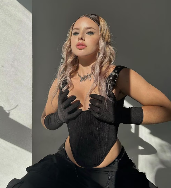 Para la ocasión, Coti posó con un corset que le apretó de más su parte adelante, lo que hizo que sobresalga. Y un pantalón negro, largo y súper canchero que por ser tiro bajo dejó a la vista parte de su abdomen.