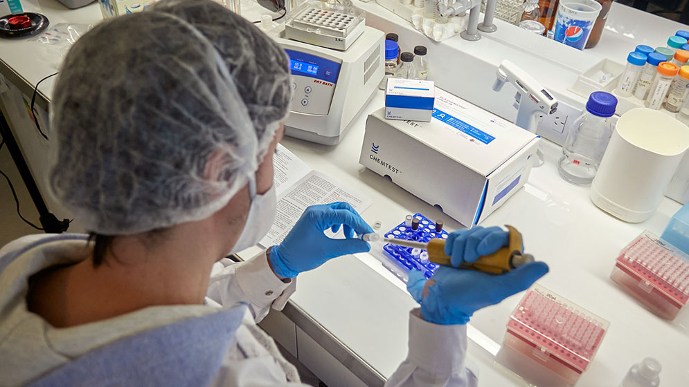 Una vez introducidas en el dispositivo, las guías de ADN que llevan estas enzimas marcan los genes virales de interés con un tinte que emite una fluorescencia después de ser escindidos, lo que indica que se trata de una prueba positiva.