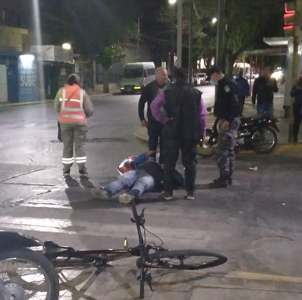 Este lunes en la noche, un motociclista quedó tendido en el pavimento tras impactar fuertemente con un Fiat Uno, en la transitada esquina de General Acha y Santa Fe, en Capital.