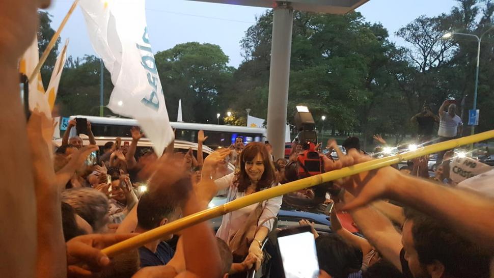 Un centenar de militantes de agrupaciones kirchneristas la aguardó en la puerta del hotel Sheraton, frente al parque 9 de Julio, donde se hospeda. Poco después de las 20, la senadora nacional electa bajó de un auto con vidrios polarizados, en medio de gritos y de empujones. Levantó los brazos, saludó a quienes la recibieron e ingresó al lobby del hotel. El mismo auto en el que llegó, menos de una hora más tarde, salió del estacionamiento privado con rumbo desconocido. Aunque no se informó de manera oficial, trascendió que la ex jefa de Estado cenó en la casa del matrimonio Alperovich y con la legisladora Silvia Rojkés.