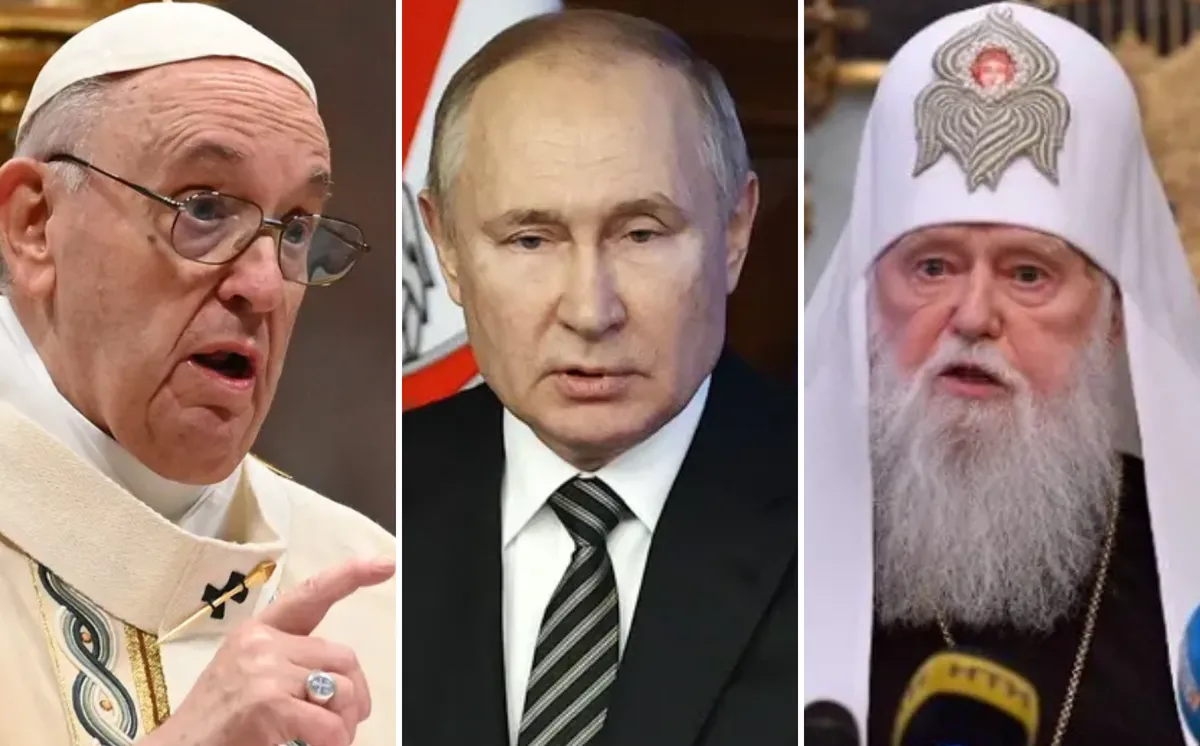 El papa Francisco, cabeza del catolicismo, pidió al patriarca Cirilo, el equivalente del Sumo Pontífice para la Iglesia ortodoxa rusa, que no se convirtiera en "monaguillo de Putin", por el apoyo que ha brindado a la invasión del Kremlin al país vecino.