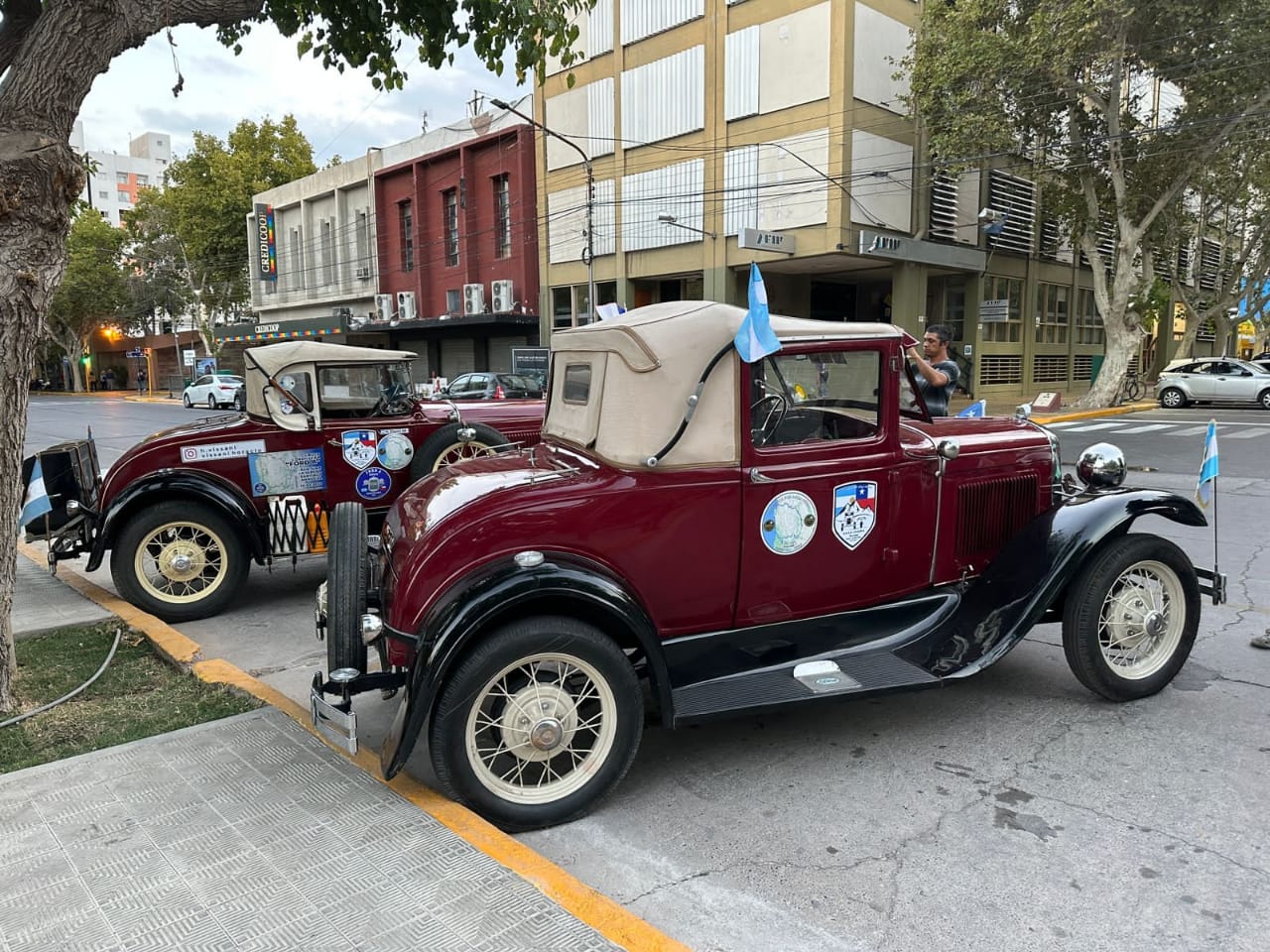 Así iniciaron el regreso por Libertadores, con parada en Mendoza donde fueron agasajados por los integrantes de autos antiguos de esa provincia.