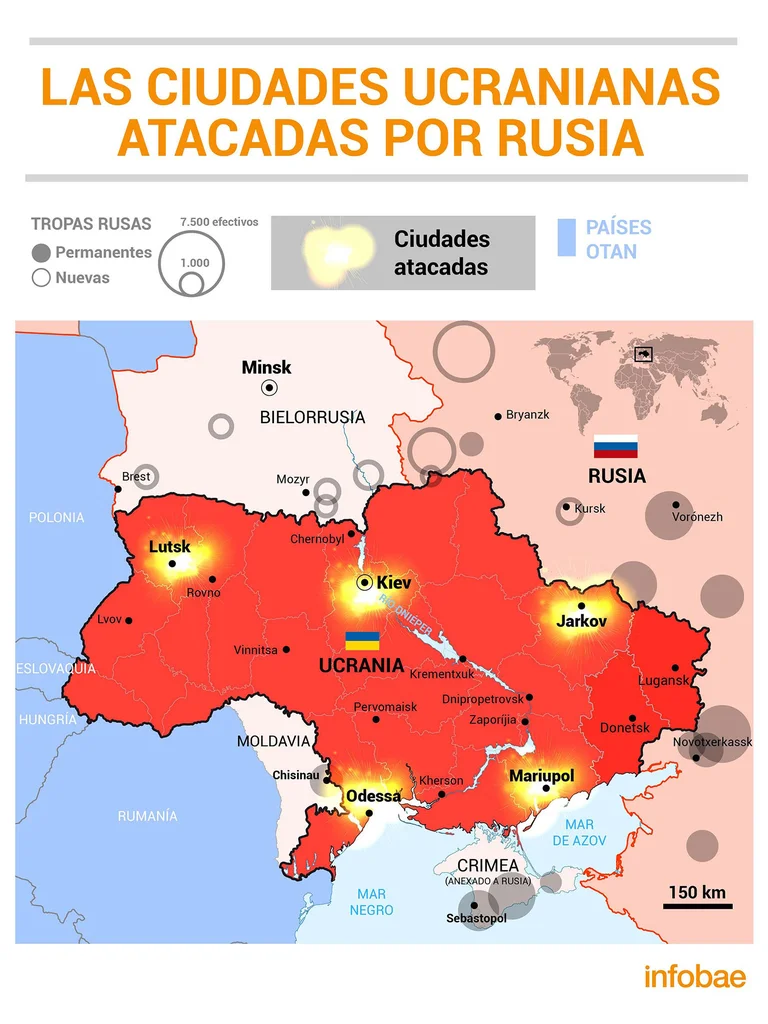 La ciudad de Mariúpol, ubicada al sureste del territorio, también fue de las primeras en reportar ataques la madrugada de este jueves.