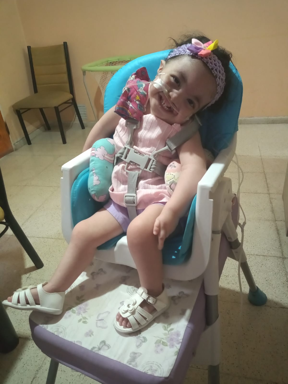 Juana nació en febrero del 2019 en el Hospital Rawson donde permaneció internada por 60 días en la terapia intermedia hasta volver a casa con internación domiciliaria. La vida no fue nada fácil, pero hubiera sido peor sin la ayuda de amigos que vendían la ropa por ella, llevaban la mercadería, cobraban, o lo que fuese necesario para que cuidara a la bebé.