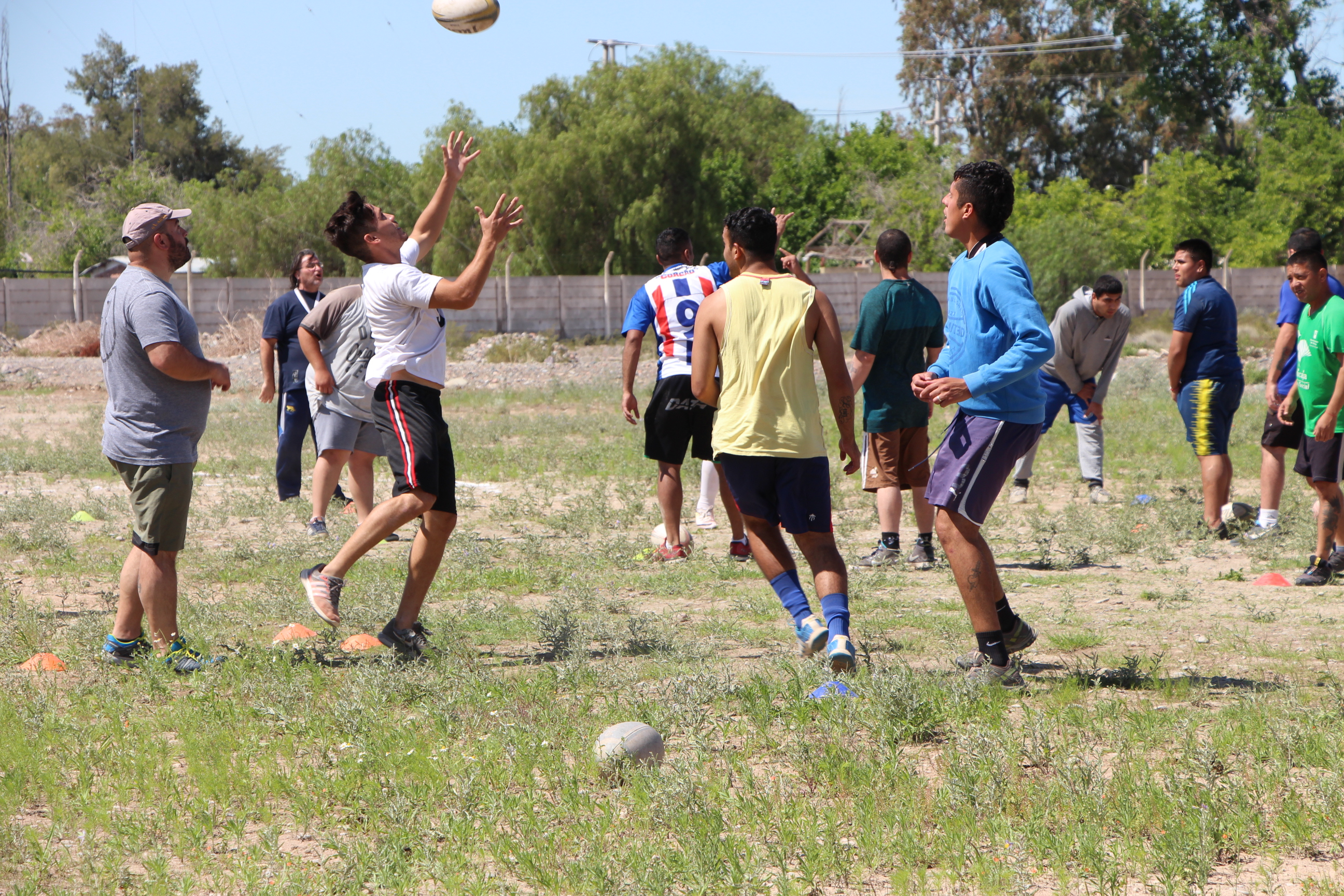 Para ellos el deporte, y fundamentalmente el rugby, significan el modo de sortear literalmente un muro que de otro modo deberían esperar años para cruzar. Una vez por semana, se arma un operativo especial en el Penal de Chimbas para que más de 30 internos salgan de sus pabellones y lleguen a una de las dos canchas que están en los patios del complejo. En un principio, esa actividad estaba dictada por agentes. Ahora, además, tienen la posibilidad de recibir la instrucción de civiles, que se acercan como voluntarios en el marco del plan implementado por la Fundación Espartanos, que llegó al Servicio Penitenciario local a principios del mes pasado.