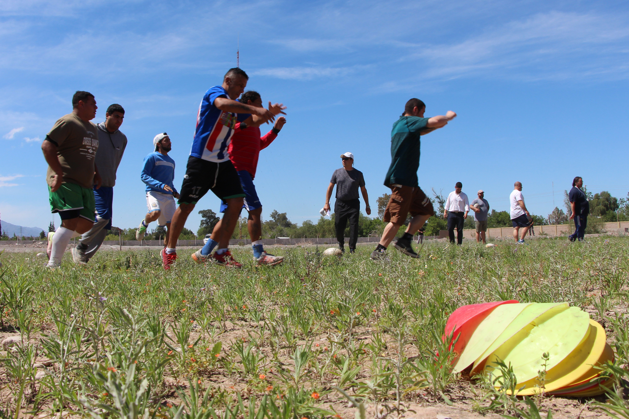 En el medio, los voluntarios, que ya recibieron las instrucciones correspondientes y fueron revisados en el ingreso, sacan las guindas y los conos. Guillermo Miodovsky, Matías Salvatore y Matías Estrada, están parados solos, en el medio del terreno. Ellos han dedicado gran parte de su vida al mundo del rugby y ahora tienen el desafío de transmitir a los presos sus conocimientos deportivos y, principalmente, los valores que encierra la actividad: el juego en equipo, la consigna de confiar en el otro, de apoyar al compañero y de respetar al oponente y, por sobre todo, de seguir las normas.