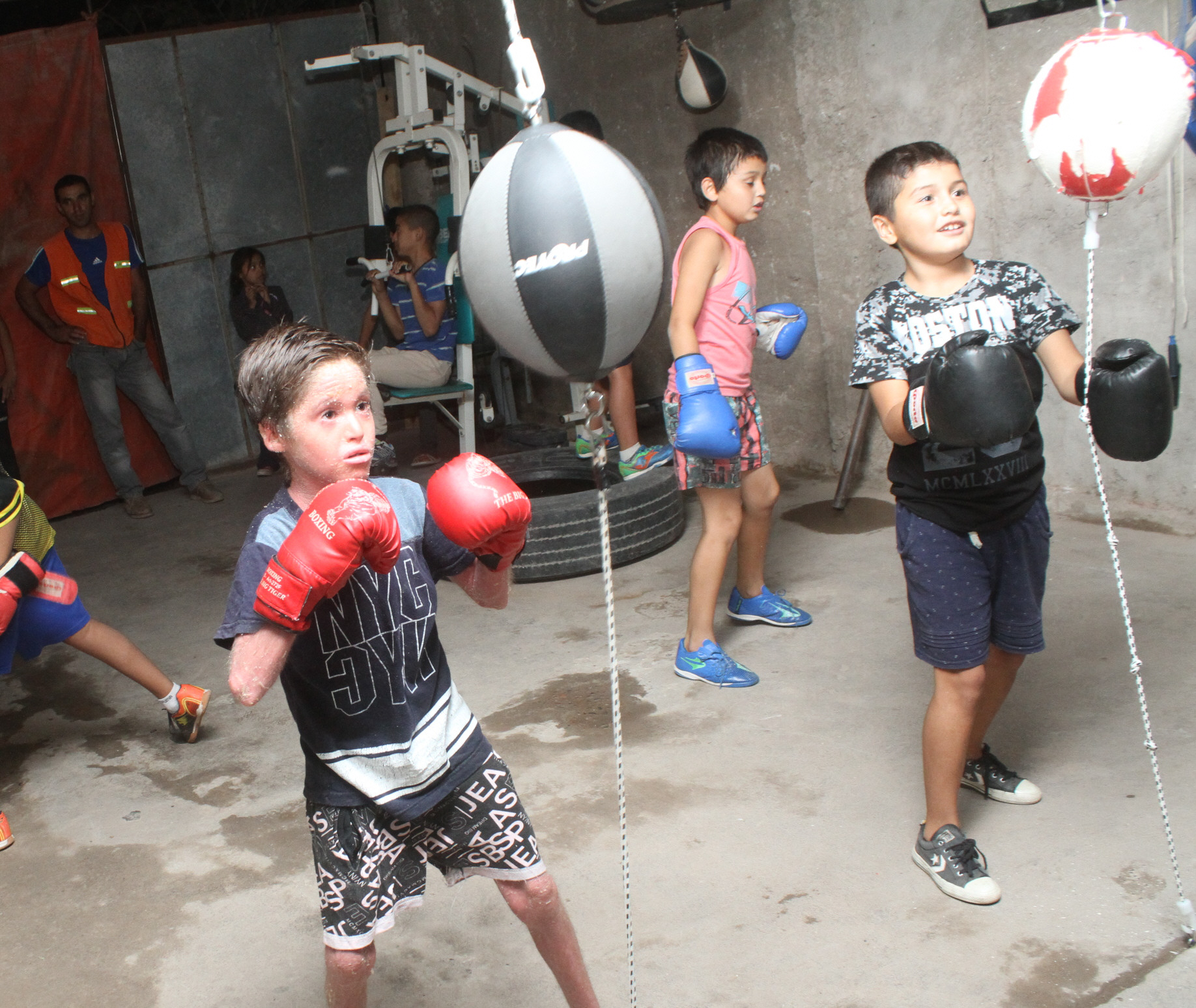 ENTUSIASMADOS, realizan todos los chicos las rutinas del gimnasio donde aprenden a boxear pero también a respetar a sus compañeros, a los mayores y a sí mismos.