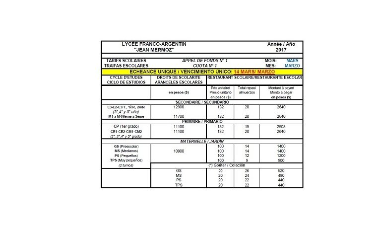 En tanto, para el primario asciende a 11.100 pesos, y el secundario cuesta 11.700 pesos los primeros años y 12.900 pesos los superiores.