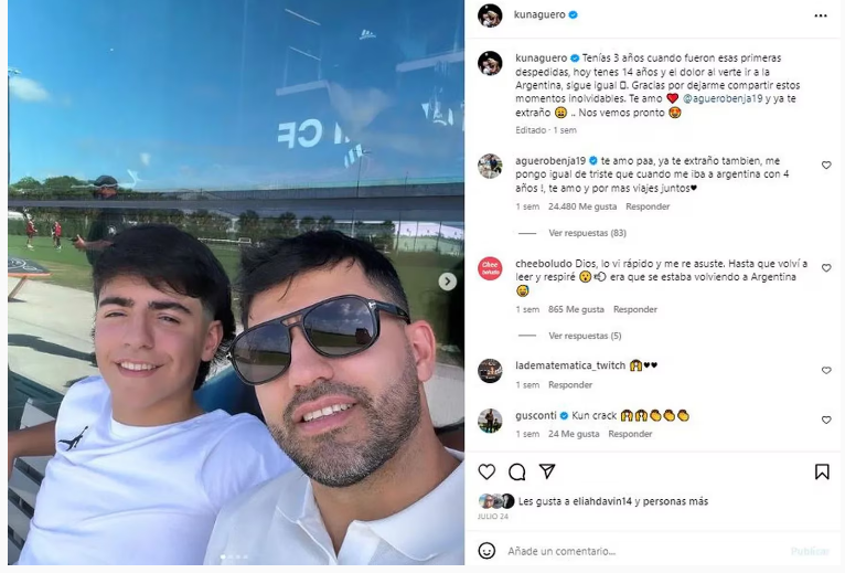 Tras compartir una serie de imágenes y videos de lo que fue su estadía en Miami, Agüero escribió: “Tenías 3 años cuando fueron esas primeras despedidas, hoy tenés 14 años y el dolor al verte ir a la Argentina, sigue igual. Gracias por dejarme compartir estos momentos inolvidables. Te amo @aguerobenja19 y ya te extraño… Nos vemos pronto”.