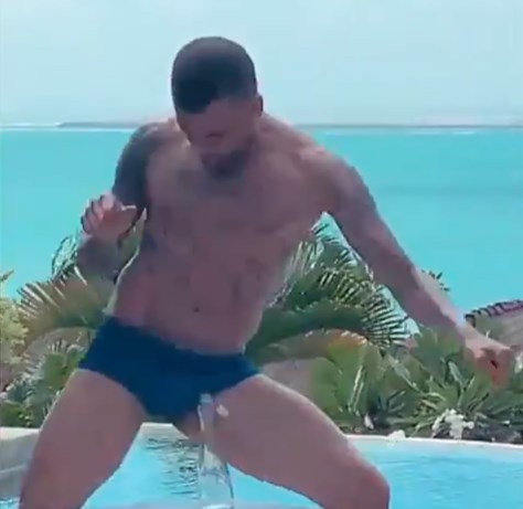 Mientras disfruta de sus vacaciones, el lateral derecho se grabó con una diminuta ropa de baño masculina y se propuso hacer el reto. El brasileño tenía la botella en frente y ante la sorpresa de todos, le sacó la tapa con un movimiento de pelvis.