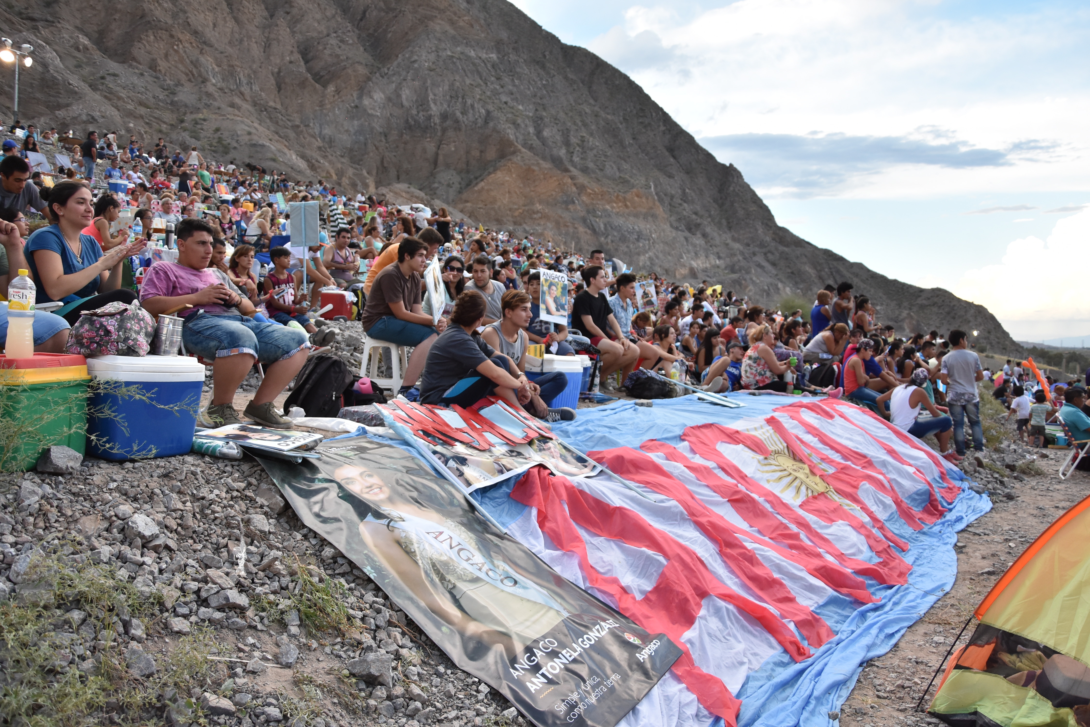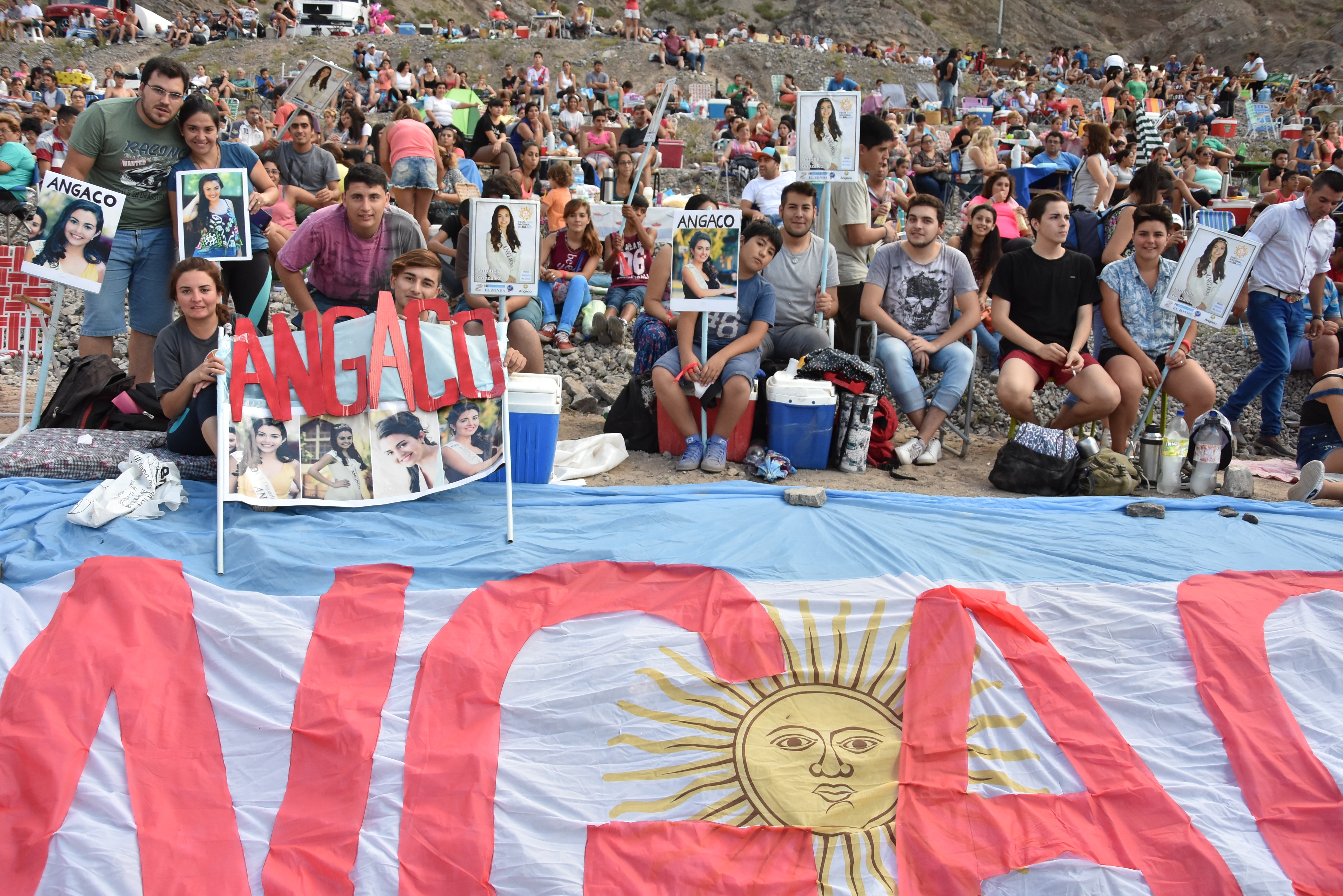 Casi 50 angaqueros viajaron más una hora y media para alentar a su candidata, Antonela González. Se trata de familiares y amigos de la representante, que se instalaron desde temprano en el cerro y le pusieron color a la tarde-noche.